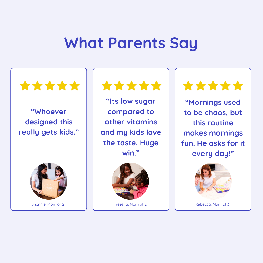 A 4-week multivitamin routine designed by pediatric nutritionists & behavioural experts—so kids get the nutrients they need daily through play. Ages 4+.
