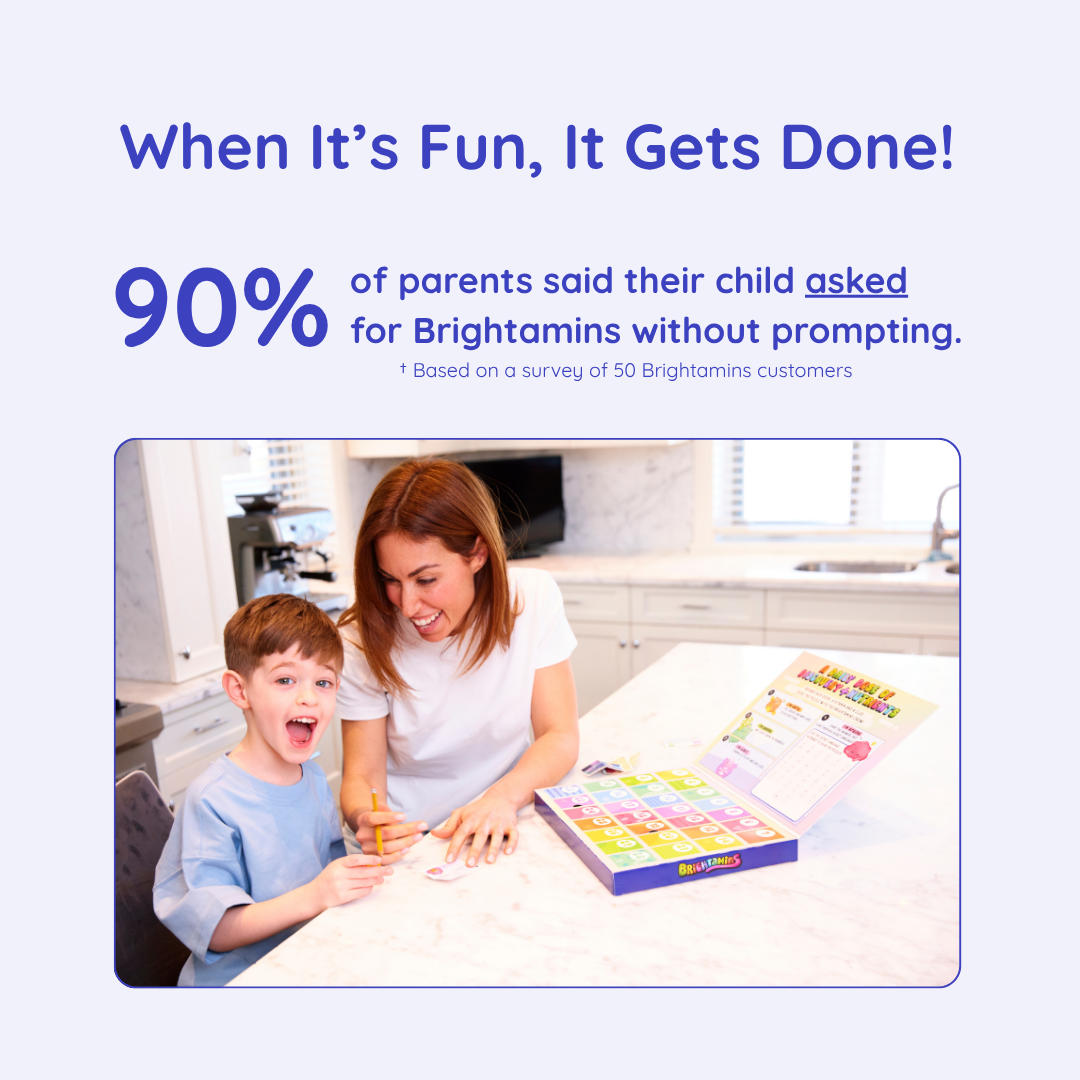 90% of children don’t eat the recommended servings of fruits and vegetables, leaving them deficient in key vitamins and nutrients. With Brightamins, parents can rest easy knowing that nutritional gaps are being filled in their kids’ diet.